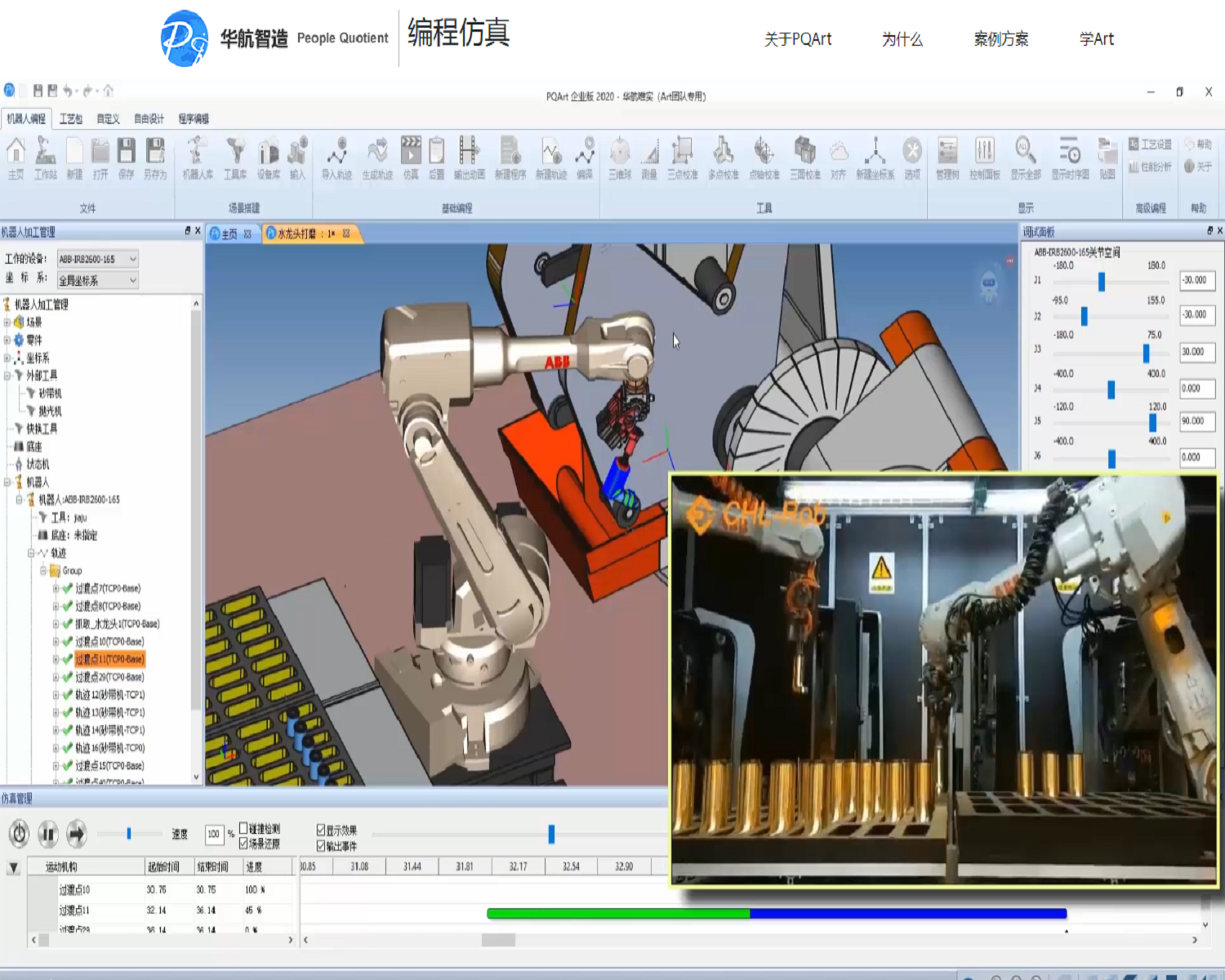 机器人:ABB-2600 工件:曲面水龙头 使用PQArt离线编程软件制作水龙头的打磨机器人运行轨迹