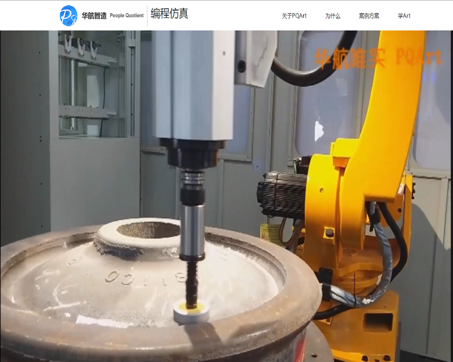 机器人电主轴打磨铸造火车轮表面粘砂和毛刺,应用PQArt离线编程软件快速生成打磨程序,解决示教编程难题。